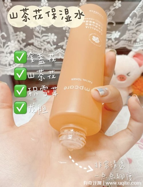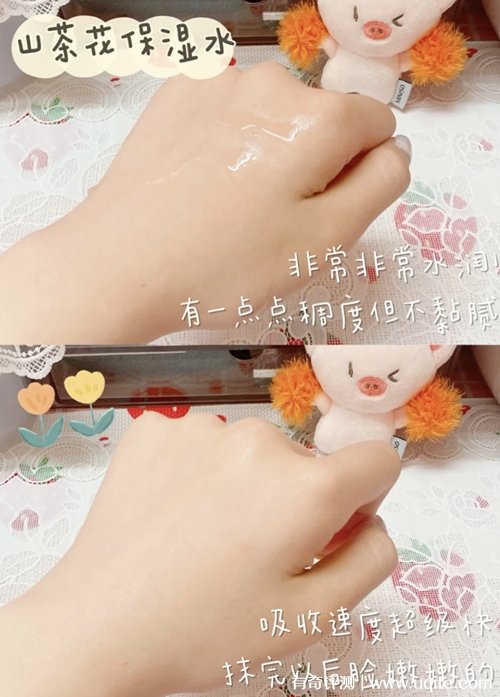 山茶花爽膚水的質(zhì)地比較輕薄,涂在臉上很清爽不會覺得黏膩,它的吸收速度挺快的,稍微拍打幾下就全部吸收了,用完之后還挺水潤的,滋潤的很高,我感覺用來濕敷的話效果會更好,前段時間臉很粗糙,連續(xù)濕敷了一段時間,臉上的死皮都消失軟化了。