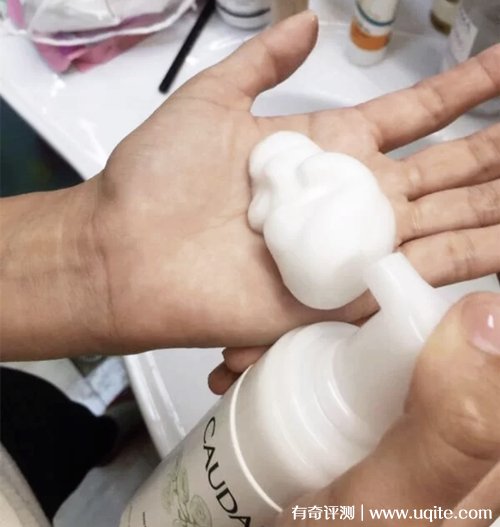 歐緹麗葡萄潔顏摩絲是一款泡沫洗面奶,擠出來就是很豐富,很綿密的泡沫,完全不需要自己再用起泡網打了,用在臉上還挺舒服的,就算不小心進眼睛了也不刺痛,沒有什么明顯的感覺。