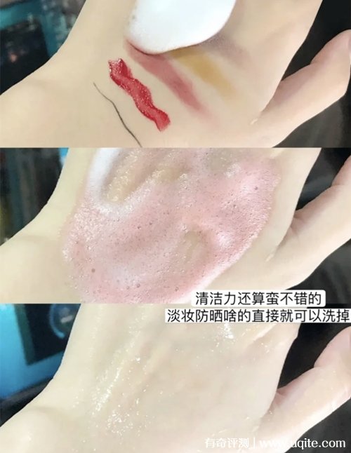 另外,這款洗面奶還有一定的卸妝力,我有時候臉上涂了點睫毛膏,口紅啥的,懶得用卸妝水,就會用這款洗面奶,它洗的還挺干凈的,臉上也沒有什么化妝品殘留。