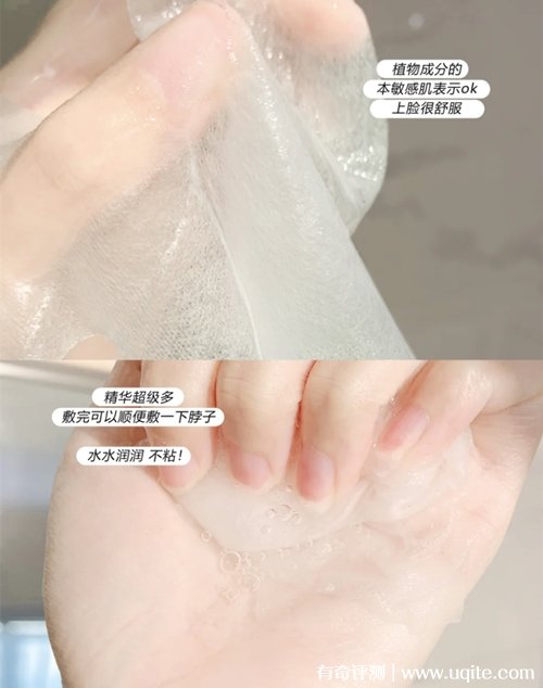這款面膜我一般都是敷20分鐘左右,敷完之后膜布取下來也沒有干,還可以擠出一些精華,對于我這種干皮來說,滋潤度也是足夠的。洗完臉之后皮膚還是很軟嫩的,看著很有光澤感,而且它的保濕效果也不錯,敷完之后一段時間內(nèi)不涂乳液也不會覺得干燥。
