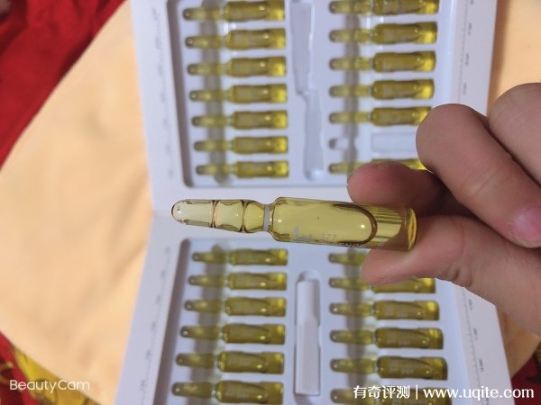 TJE377原液安瓶包裝還挺精致的,一盒里面有28支,因為它弄開之后也不好再封上,所以必須一天一支,我晚上用了之后,還有剩的就混在身體乳里面抹脖子和身上了。里面配套有開瓶器,不過需要注意點用,挺脆的。