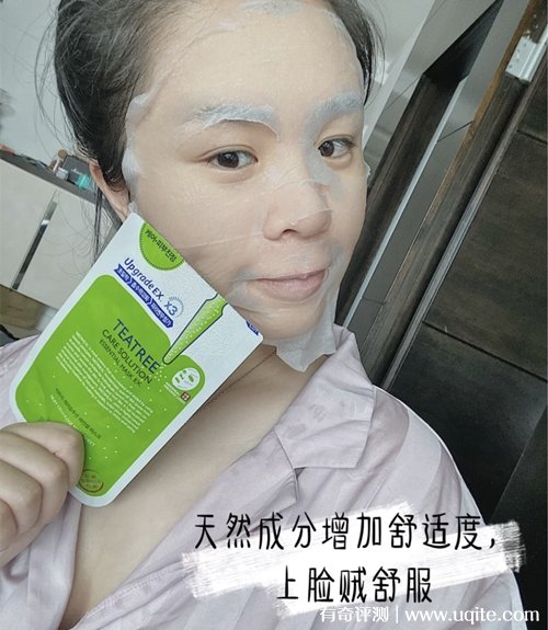 美迪惠爾面膜打開之后味道聞著也不刺激,有一股淡淡的茶樹味道,我皮膚還算是比較敏感的,用完之后我感覺很溫和補(bǔ)水,就算是敏感肌用著也沒有什負(fù)擔(dān)。