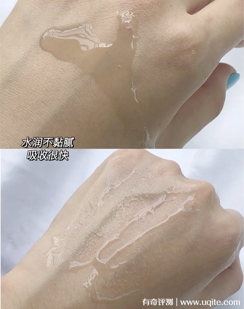 它的質地還挺水潤的,跟精華水差不錯,,用在臉上不粘稠,挺清爽的,吸收的很快,隨便拍幾下就吸收了,用完了就感覺皮膚水水嫩嫩的,就像喝飽了水一樣,摸著也沒有什么粗糙感。