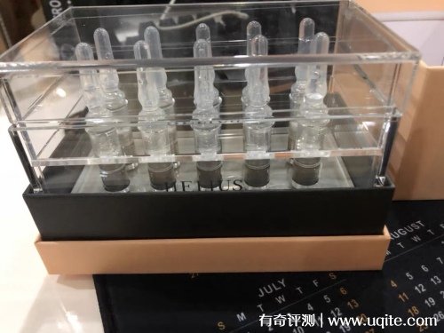 產(chǎn)品的包裝就還挺亮眼的,顏值很高,而且密封保存效果很好,除了外面的保護(hù)盒以外,里面還有一層透明的安瓶架,可以直接拿出來(lái)擺在桌子上,這一盒凍干安瓶精華是10支裝。