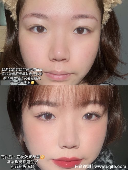 芭貝拉粉霜上臉之后就是那種半奶油啞光的妝效,看著挺高級(jí)的,涂完之后看著就像是開(kāi)了美顏磨皮一樣,毛孔基本上都被隱形了,整體看著非常自然,妝容也很服帖,一點(diǎn)也不假面厚重。