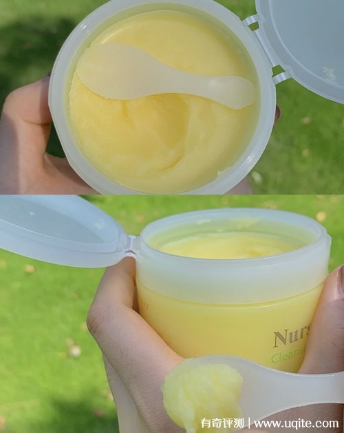 Nursery卸妝膏的膏體是淡黃色的,剛打開的時候我以為它的膏體很硬,但挖的時候它還挺軟糯的,很好挖取,我一般一大勺的量,就可以卸全臉了,它上臉還挺好推開的,一點也不厚重,也不會覺得很悶很油膩,稍微按按摩就可以卸的很干凈。