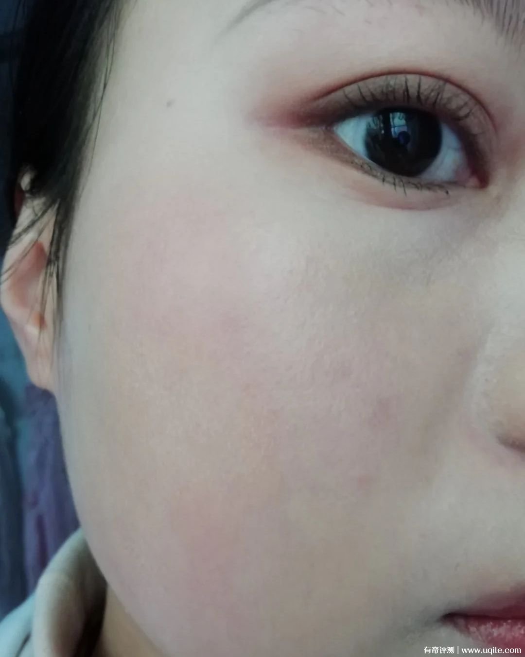 pmpm粉底霜上臉之后很服帖,不卡粉,抹開(kāi)之后顏色挺白的,但因?yàn)閵y感還比較通透,所以不顯得假,這個(gè)妝效是我最喜歡它的一點(diǎn)了,像自己本身皮膚一樣,偽素顏的感覺(jué)。遮暇方面也還不錯(cuò),毛孔隱形得七七八八了,泛紅痘印都淡化了不少。