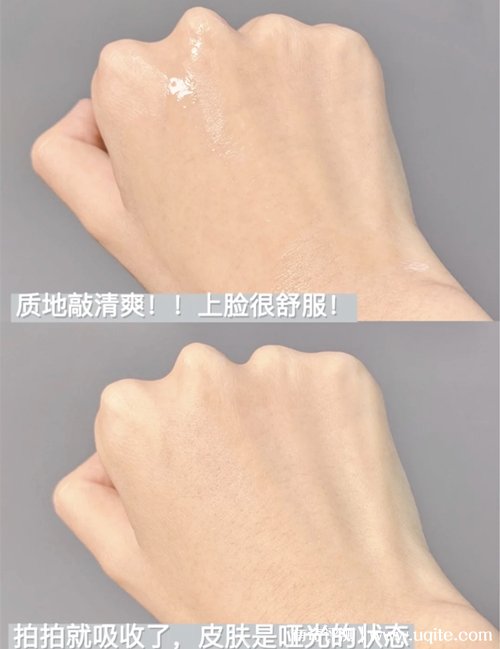 它的質(zhì)地很清爽,一點也不黏膩,我有時候比較懶就會直接往臉上拍,吸收的很快,用完之后皮膚摸著還挺軟嫩的,保鮮效果也不錯,就算一段時間內(nèi)不涂乳液,也不會覺得臉干。