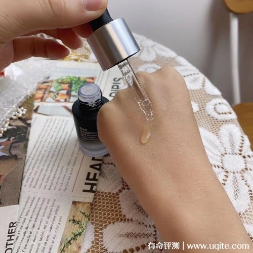精華原液是滴管式的設(shè)計(jì),使用起來很方便,精華的質(zhì)地很清爽,透明的水狀感,上手涂抹吸收很快。而且它的延展性很強(qiáng),平時(shí)上臉使用,只需要三滴就可以了,抹完之后整個(gè)面部肌膚看起來都水潤透亮了不少。