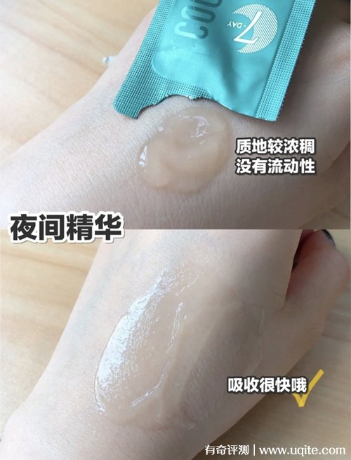 晚間精華的質(zhì)地要更濃稠一點(diǎn),像啫喱一樣,沒(méi)有什么流動(dòng)性,涂在臉上冰冰涼涼的,不會(huì)很厚重,涂完之后就算繼續(xù)疊加面霜也不會(huì)搓泥,它的吸收速度也很快,滋潤(rùn)度也很高,用完之后皮膚摸著有水潤(rùn)感,沒(méi)有殘留在表面的那種觸感,更像是到了皮膚里面,摸著非常的彈嫩。