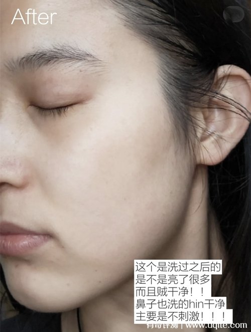 洗完后臉上油脂都被帶走了一樣,還挺清爽的,但也不緊繃拔干,臉摸起來軟軟的,我比較喜歡它的一點(diǎn)是它洗完后不拔干。清潔效果蠻不錯(cuò)的,每次洗完后,黑頭感覺有變少,白頭也浮出來了一些,很好弄掉。