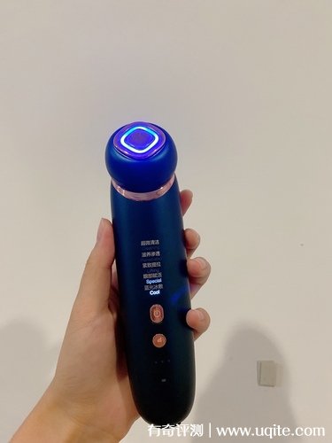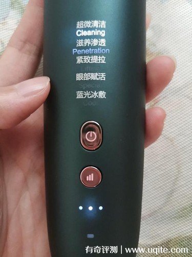 這款美容儀一共有粉色和墨綠色兩種顏色可選,我個人比較喜歡這款綠色,所以就直接入手的這款。美容儀一共有五種模式,分別為超微清潔、滋養(yǎng)滲透、緊致提拉、眼部賦活和藍(lán)光冰敷,上手操作起來就還挺簡單的。