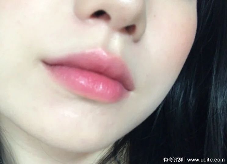 顏色來說我很滿意,是很溫柔的類型,變色程度我沒太注意,反正都差不多的感覺。我喜歡薄涂,幾乎看不出來是涂了東西的,很自然。厚涂的話會更滋潤,顏色也更明顯,偏玫紅調(diào),嘴巴看著水潤飽滿。