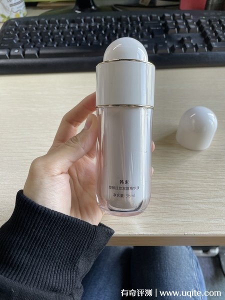 我是馬上就要奔三的年紀了,以前一直覺得皮膚還挺好的,但是今年感覺真的老得明顯好多了,肉松垮了些,眼紋也出來了,感覺必須得用上點抗老產品了。韓束這個牌子的東西我用得挺多的,看到他們家這款雙燈管精華成分好像很牛的樣子,就買了支回來。