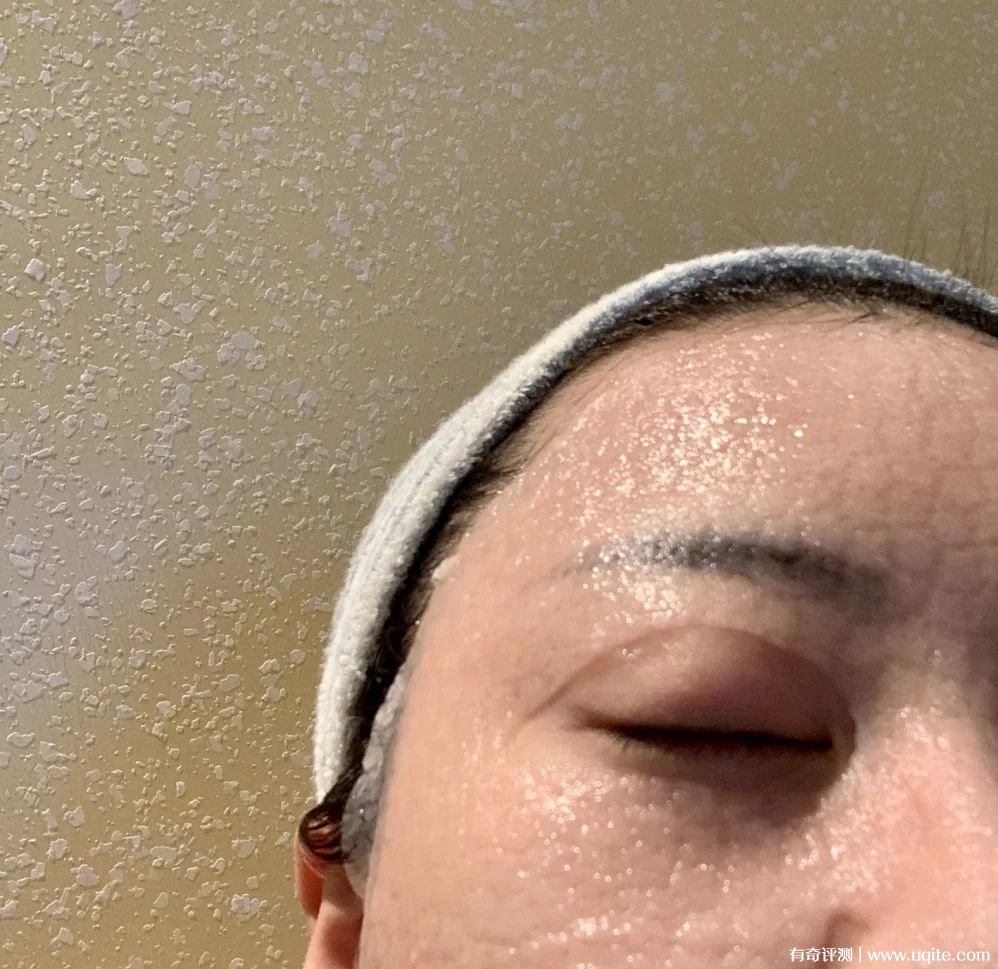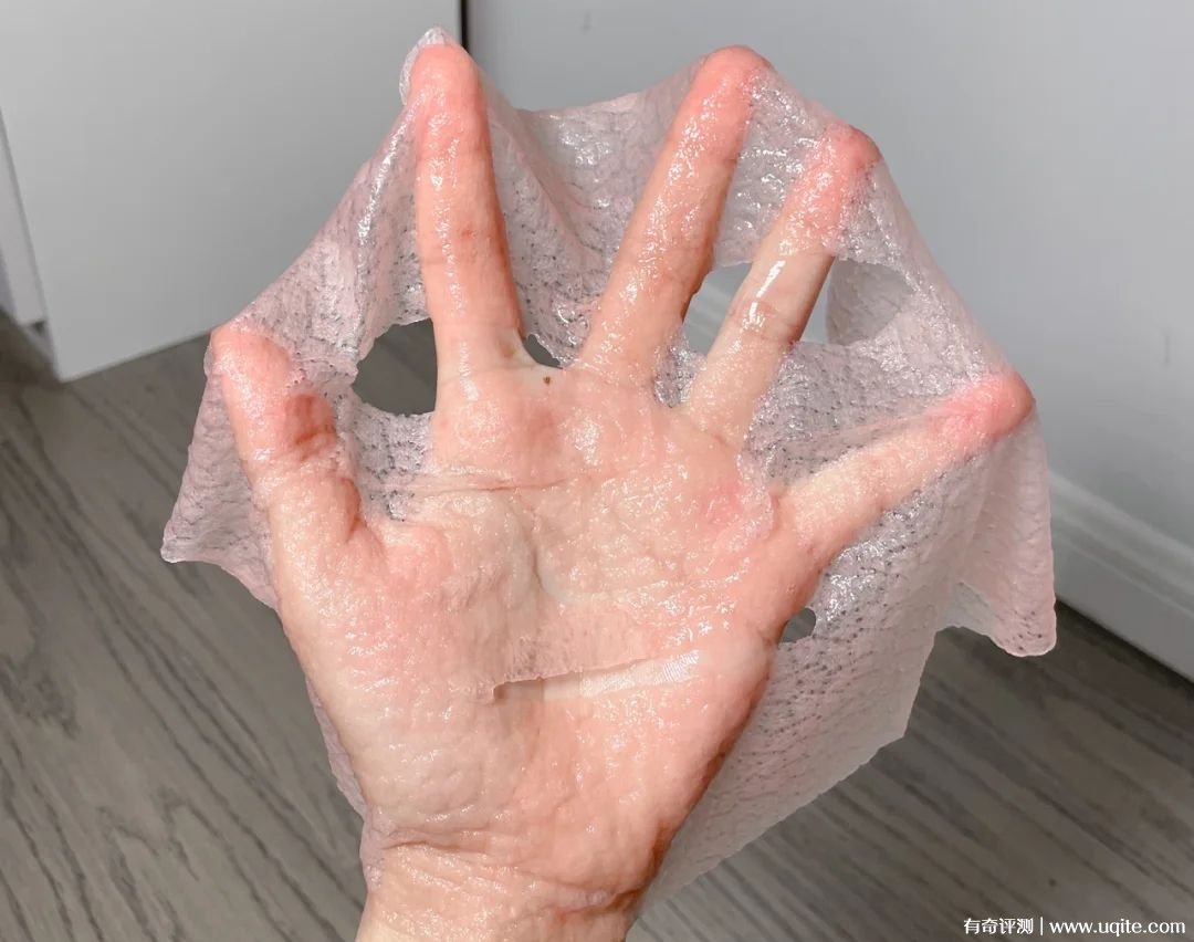 它用完后膜布上的精華少了很多,吸收度挺高,用完臉上水水嫩嫩的,皮膚摸著有種飽滿的感覺。視覺上毛孔收縮了些,皮膚透亮有光澤。它保濕效果也挺好,我后續(xù)就用點水和精華就完事,隔天也還是嫩嫩的,比剛敷完的時候看著還透亮些,沒有熬夜感。