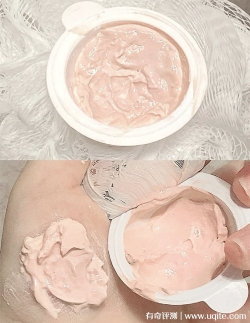 打開之后,它里面是粉色的,味道挺好聞的,有一股淡淡的蜜桃烏龍的清香,不刺鼻,敏感肌用著也不會(huì)有負(fù)擔(dān)。它的質(zhì)地比較軟糯,上臉很滋潤,也很好推開,我一般在用清潔面膜前會(huì)在臉上噴一層爽膚水,畢竟是一款清潔面膜,我怕它吸收我臉上的水分。