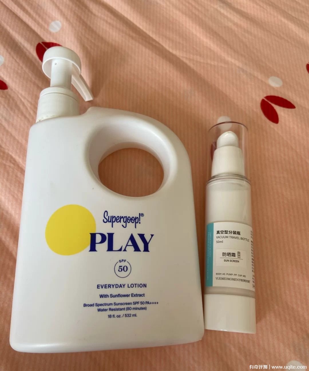 supergoop防曬霜到手的時(shí)候還送了個(gè)分裝瓶,隨身帶著挺方便的。它味道是淡淡的檸檬味,還挺好聞。質(zhì)地是乳液狀,水潤(rùn)感明顯,剛抹上的時(shí)候稍微有點(diǎn)油(防曬效果好、指數(shù)高的防曬霜都會(huì)油,如果很少出門,用SPF30左右的產(chǎn)品就差不多了,會(huì)更清爽),如果涂得不厚,成膜之后就消失了。