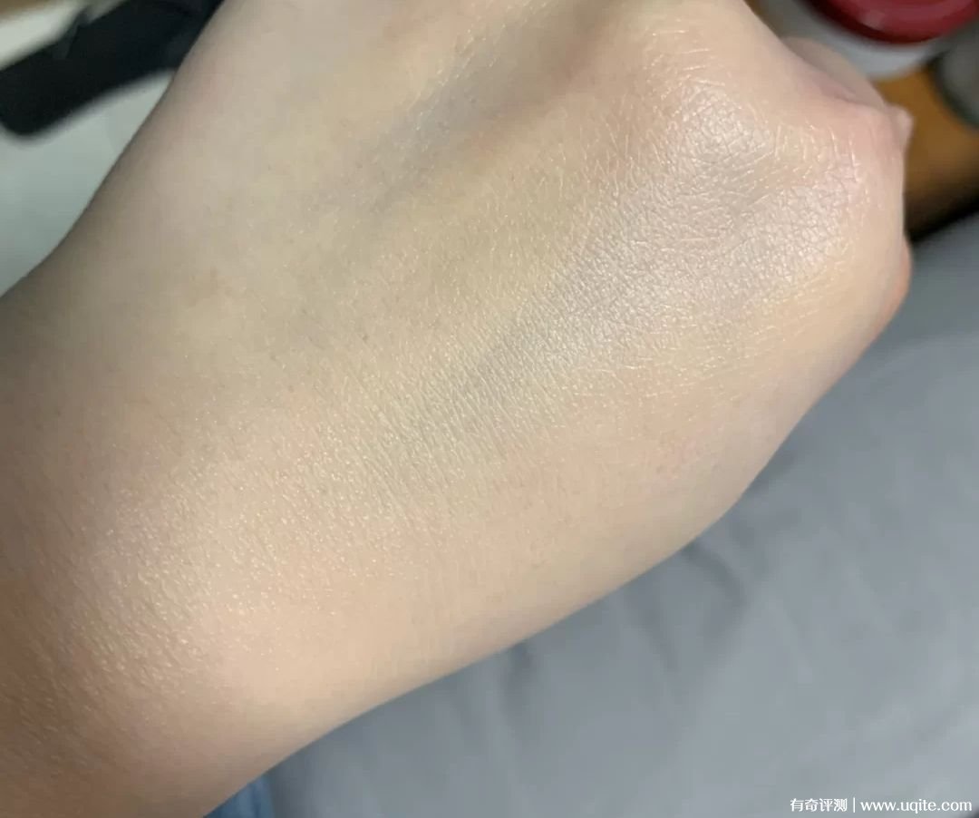 蒂邇肌防曬霜是駝色的,很水潤的質(zhì)地,抹開之后輕薄不粘膩,剛開始會有點油光,成膜后就消失了,整體使用感確實不錯。還稍微帶點增色效果,自然通透、挺有光澤感的,不泛白,我臉上暗沉明顯,能修飾一下,平時趕時間化不了妝只涂它出門也挺好的。