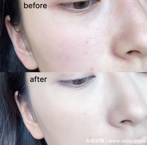 透蜜粉底液的遮暇效果屬于中等偏上,很好地均勻了膚色,臉上的毛孔遮得七七八八,小瑕疵也看不見(jiàn)了,感覺(jué)開(kāi)了磨皮效果。我的黑眼圈還是比較重的,上一遍可能遮不住,需要繼續(xù)疊加,它是有一定水潤(rùn)度的,所以繼續(xù)疊加也不會(huì)厚重卡紋。