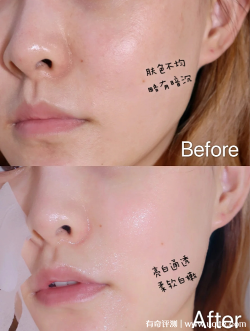 JM面膜在使用過程中吸收還挺明顯的,敷了十幾分鐘之后膜布就干了不少,還有點殘留可以擦擦脖子。用完后皮膚軟軟嫩嫩的,有種飽滿的感覺,視覺上毛孔收縮了些,膚色也透亮了一點。