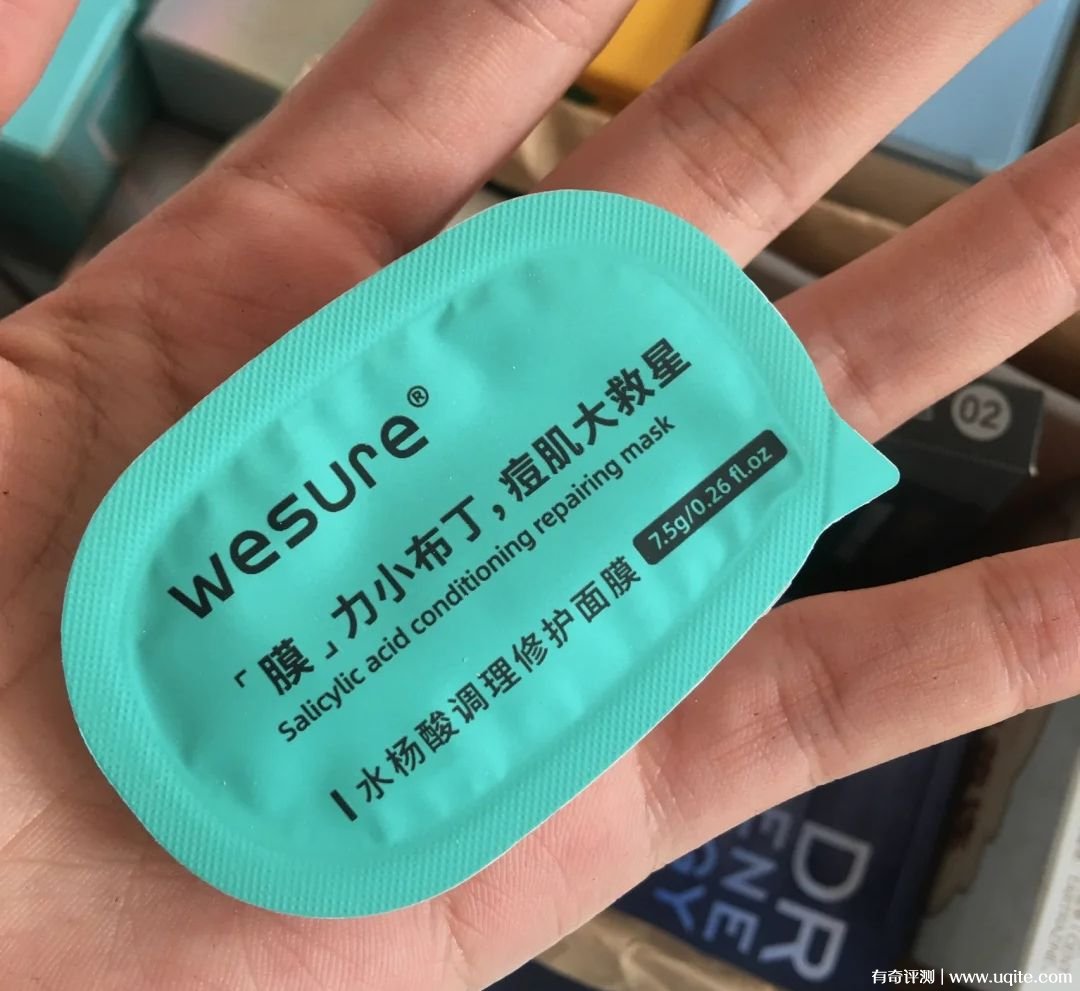 我是個(gè)混油皮,臉上最大的問題就是毛孔大黑頭多,看到不少人都在用水楊酸產(chǎn)品,說是效果好,所以就決定試試。因?yàn)檫€是有點(diǎn)害怕爛臉,所以決定選濃度低一點(diǎn)的。wesure水楊酸面膜我是在微博上種草的,看價(jià)格也還蠻實(shí)惠,就買了一盒回來。