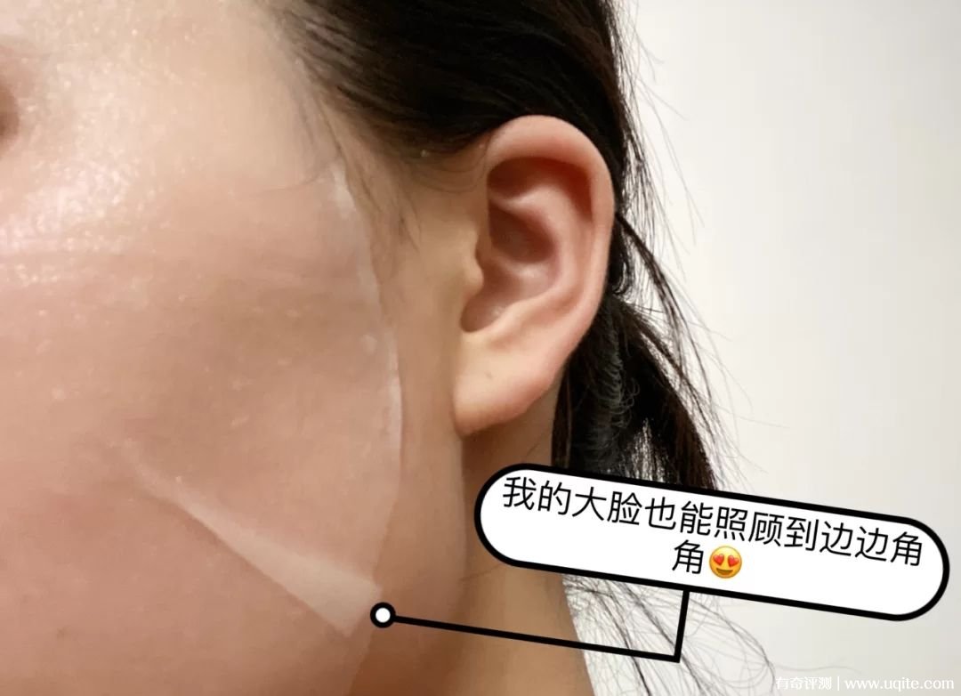 迪凱瑞面膜用起來還挺好玩的,精華和膜布是分開的,在中間折疊幾次,再擠一擠,揉一揉,精華就跑過去了。膜布挺柔軟的,厚薄適中,上臉服帖,挺大的,我這個大臉也能照顧到邊邊角角,剪裁合理,鼻子眼睛嘴巴都對的挺準(zhǔn)的。