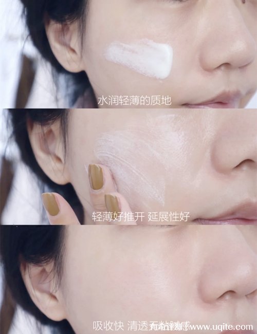 獨島防曬霜的質(zhì)地有點像乳液,不厚重,還是蠻清爽的,上臉也沒有什么油膩感,就算是油皮用著也沒有什么壓力,抹開之后很輕薄服帖,水潤度比較高。