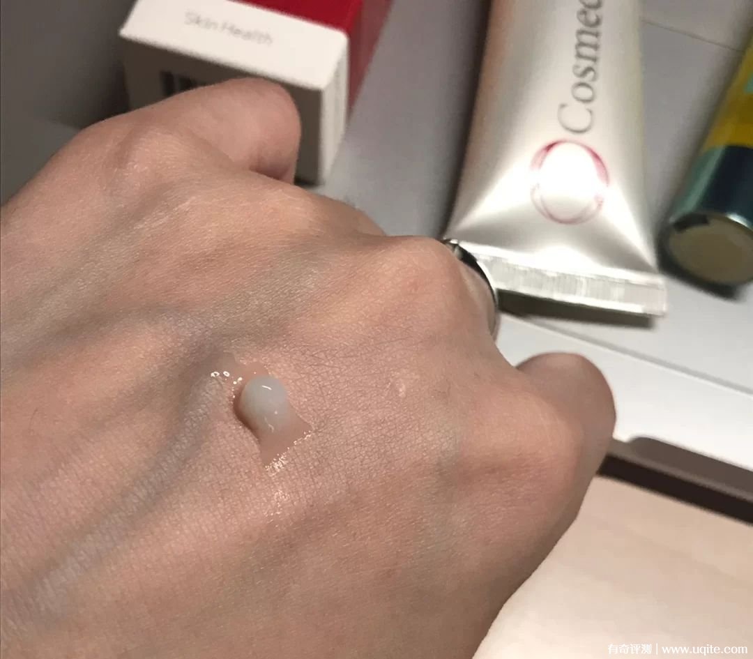 o cosmedics多效修復(fù)精華是乳白色的乳液狀,不過它不粘稠,一抹開就基本化水了,是很清爽的類型,吸收也快。用著涼涼的,很舒服,后續(xù)不油膩。用完后臉上水分感有上升,我一般是用果酸后會(huì)用它。