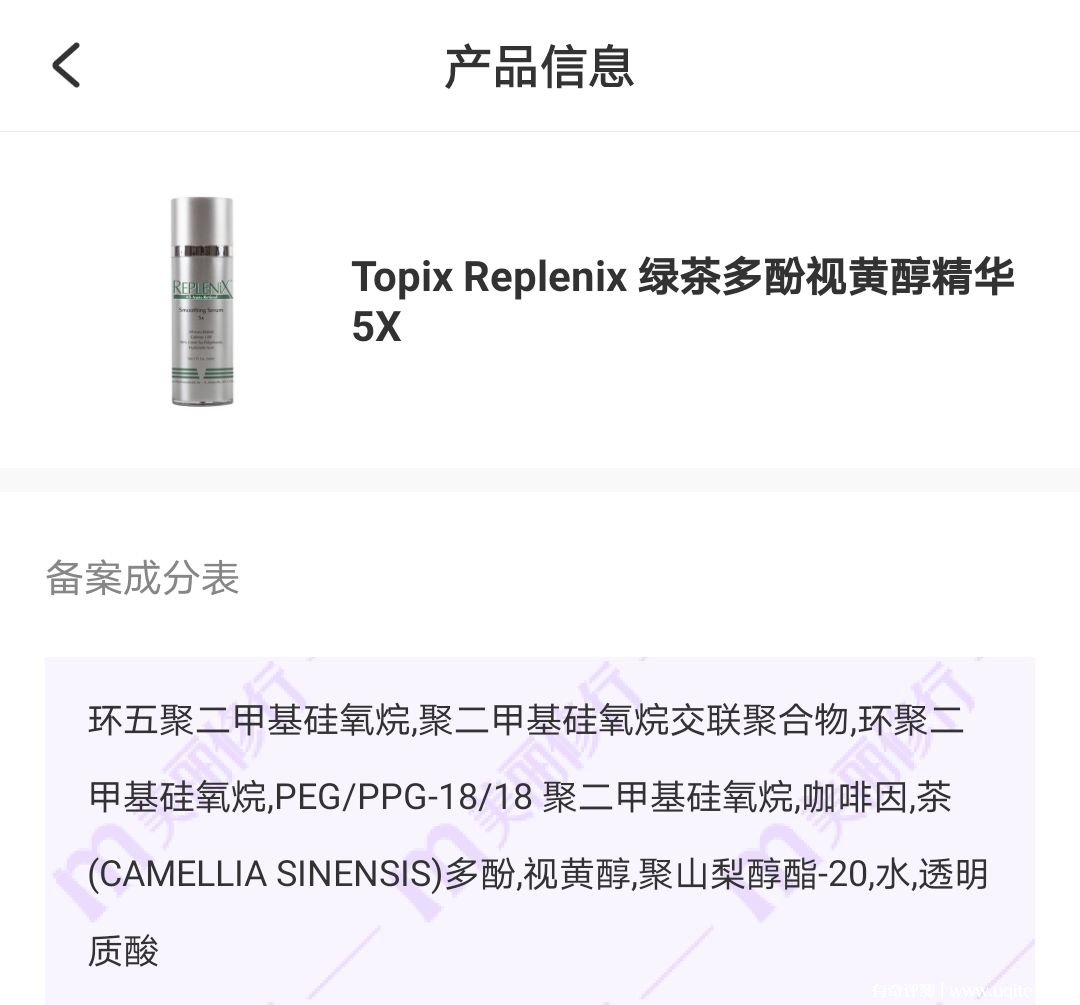 topix是一個來自美國的知名藥妝品牌,有40多年歷史了,專注于打造安全有效的產(chǎn)品,幫助用戶解決各類皮膚問題。而replenix(珞蓓詩)則是旗下明星子品牌,擁有多項專利成分和技術,主研抗氧化和抗衰方面產(chǎn)品,受到了許多消費者的喜愛。其中,綠茶多酚視黃醇精華就是一款熱賣產(chǎn)品,主打淡紋抗皺效果,不含香精、防腐劑以及其他風險成分。下面一起來具體看看topix綠茶多酚視黃醇精華怎么樣。
