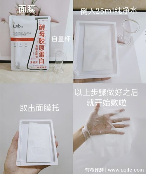 Lab101瑞沛面膜到手之后包裝還蠻好的,面膜拿出來(lái)之后是干的,需要自己加純凈水使用,它配套有一個(gè)量杯,用起來(lái)還是蠻干凈衛(wèi)生的。