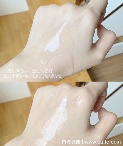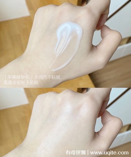 至于乳液的流動(dòng)性也蠻強(qiáng)的,質(zhì)地不油膩,還蠻輕薄了,上臉一抹劃水的感覺,吸收速度稍微要比爽膚水慢一點(diǎn),吸收之后臉還挺清爽的,不會(huì)顯油光,用完后皮膚看著還挺透亮的,它的保濕力也是足夠的,我涂完它之后就沒有涂其他的護(hù)膚品,隔天起來皮膚摸著還蠻軟的,不粗糙。