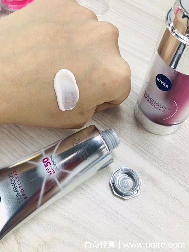 妮維雅ua防曬霜在臉上涂開之后有一點(diǎn)點(diǎn)的潤(rùn)色效果,但不會(huì)假白,遮蓋力不錯(cuò),可以均勻一點(diǎn)膚色,而且成膜速度也快,用完之后臉上還挺有光澤的。另外,這款妮維雅ua防曬霜的防曬指數(shù)是SPF50+PA+++,挺高的,日常使用是完全沒問題的。