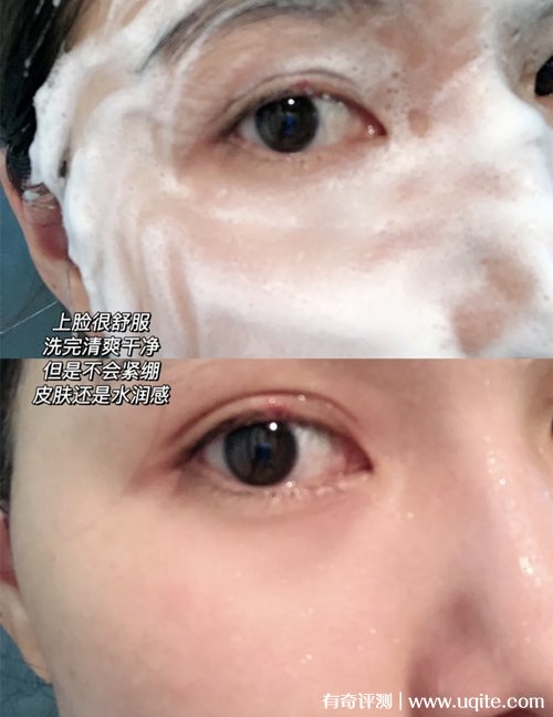 顏伶潔面乳上臉溫和不刺激,有時候不小心弄到眼睛里面也沒啥感覺。它洗完之后皮膚不緊繃拔干,還是很有水分感的,肉眼看著也透亮不少。保濕也不錯,一時半會不抹水乳也沒關(guān)系。