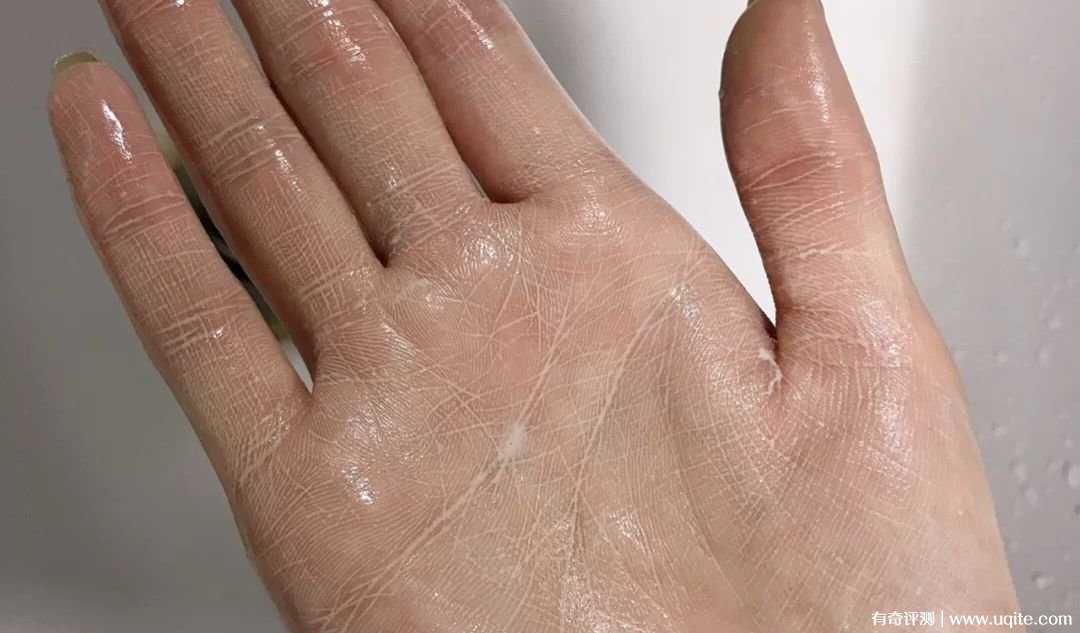 我先是干手乳化,揉搓溫?zé)嵋粫^后,就是油狀的了。上臉之后按摩按摩,妝也基本溶掉了,最后再加點(diǎn)水揉揉,會變成乳白色。清洗完,臉上就干干凈凈的了,卸妝效果蠻好的。