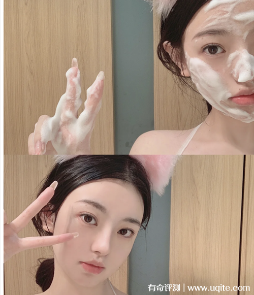 它是按壓頭的設(shè)計,輕輕一按壓就能出來綿密的泡泡,完全省去了手動起泡的過程,使用起來就還挺方便的。泡泡上臉之后就還挺親膚的,一點不適的感覺都沒有,而且這款漫丹洗面奶的清潔效果很好,我本身是一個混油,它把臉上的油脂有洗下去了,洗完之后肌膚感覺很清爽,沒有任何緊繃感,而且在鼻子上多揉搓一下,可以把鼻子上的黑頭搓下去不少,洗完后鼻子看著干凈了很多。