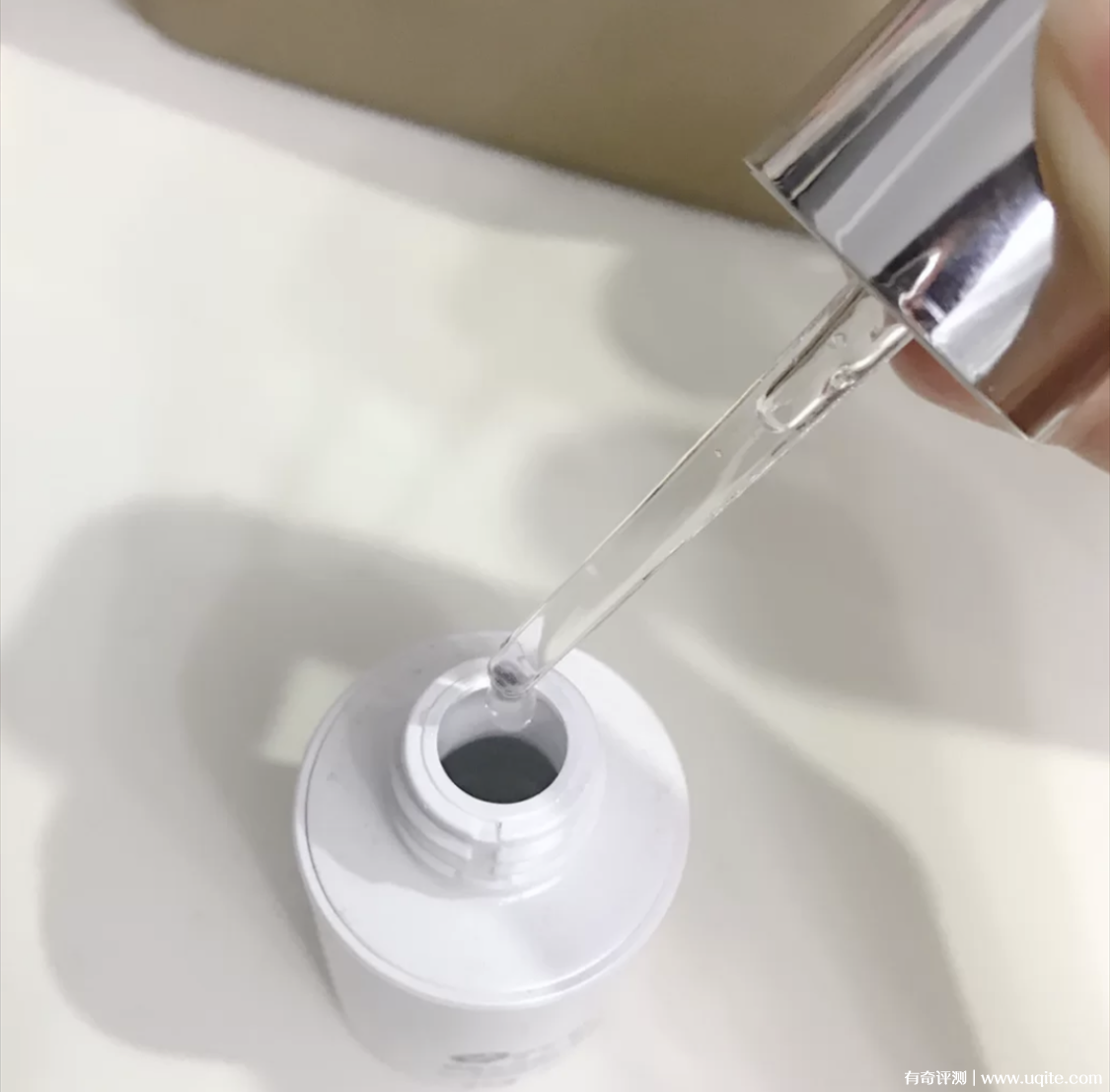 它是滴管的取量方式,用起來(lái)還蠻干凈衛(wèi)生的,我一般半泵的量就可涂全臉了,它的質(zhì)地是很清透的流動(dòng)性很強(qiáng)的類型,上臉不粘膩(油皮用也可以),吸收也快,隨便拍打幾下就完全吸收了,用完后皮膚有種水水潤(rùn)潤(rùn)的感覺(jué),而且后續(xù)護(hù)膚也不搓泥不油膩。