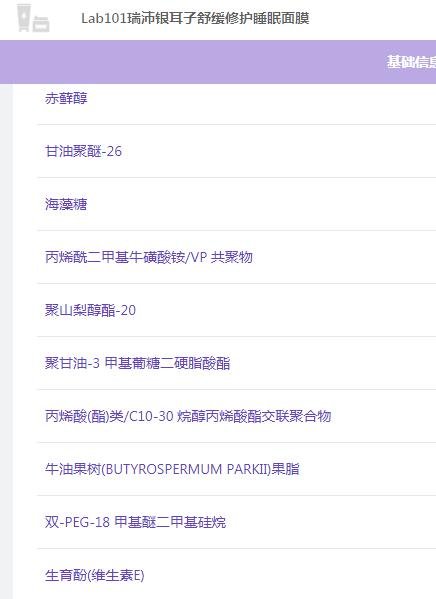 Lab101瑞沛睡眠面膜到手的時候還送了一些片狀面膜,這款睡眠面膜打開之后,味道聞著也不刺激,我也在晚上查了一下這款面膜的成分,還是蠻安全的,沒有添加什么香精和酒精,敏感肌用也是沒什么問題的。