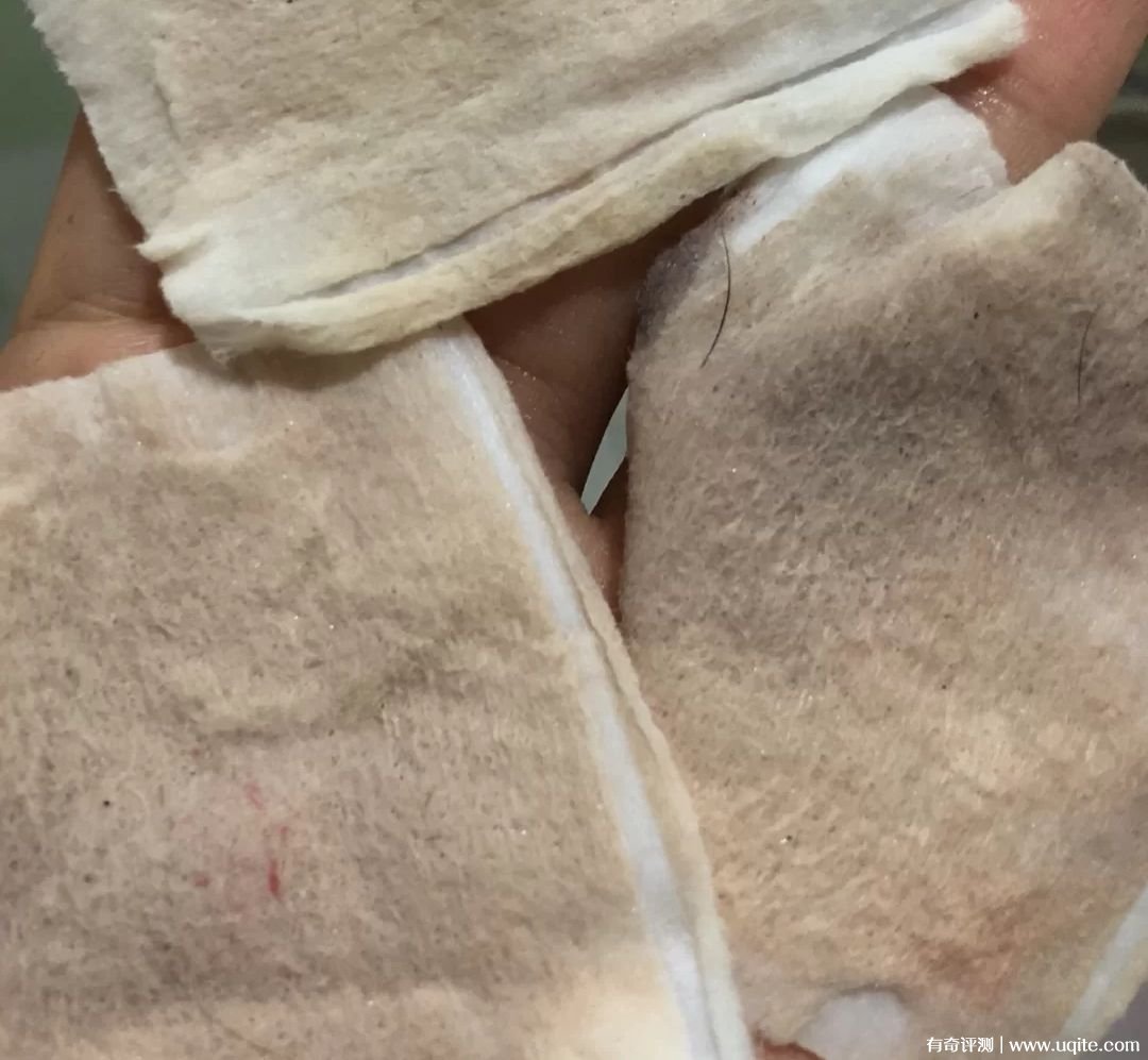 我時間充裕的話還會畫眼妝,睫毛膏眼影之類的,就用化妝棉沾了卸妝水之后敷一會就好。卸完后臉上干干凈凈的,化妝棉則很臟。