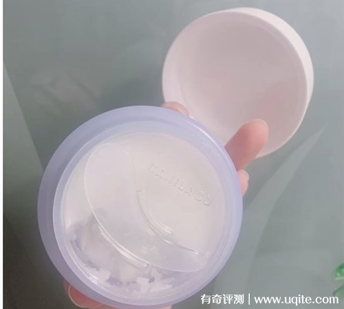 它的質(zhì)地看著很硬,但其實很好挖取,挖出來的卸妝膏很軟糯,顆粒感很細(xì),上臉還蠻舒服的,它味道用法還蠻簡單的,直接上臉揉搓就可以,卸妝膏在接觸臉上皮膚之后,會被皮膚的溫度溶解成油狀的,可以很好的溶解彩妝。