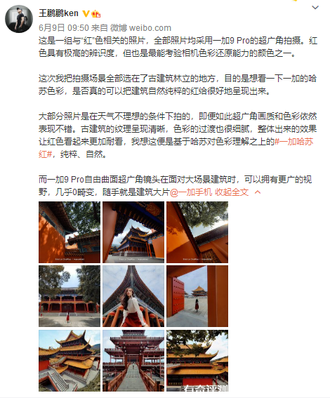 前段時(shí)間,一加手機(jī)官方聯(lián)合IPA國(guó)際攝影獎(jiǎng)、星球研究所發(fā)起了#我的城市正當(dāng)紅#活動(dòng),目的是讓每位一加9系列手機(jī)用戶能夠用手機(jī)記錄下身邊獨(dú)一無(wú)二的紅色之美。劉作虎表示,在影像色彩調(diào)校上我們付出了巨大努力,特別是對(duì)于紅色,我們和哈蘇聯(lián)手進(jìn)行了特調(diào)。這次的“一加哈蘇紅”,讓我們一加9和一加9 Pro在對(duì)紅色的表現(xiàn)上達(dá)到了一個(gè)新的水準(zhǔn)和高度。