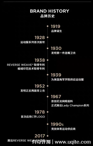 冠軍最初是以生產(chǎn)和銷售優(yōu)質(zhì)汗衫為主的,在50、60年代的時(shí)候,通過(guò)獨(dú)特的植毛印花技術(shù),在運(yùn)動(dòng)服上印上了大學(xué)的?;蘸兔?,從而在美國(guó)高校和大學(xué)領(lǐng)域聲名鵲起,因此品牌發(fā)展至今,冠軍的服裝產(chǎn)品大多還是以80、90年代的運(yùn)動(dòng)元素為主設(shè)計(jì)。