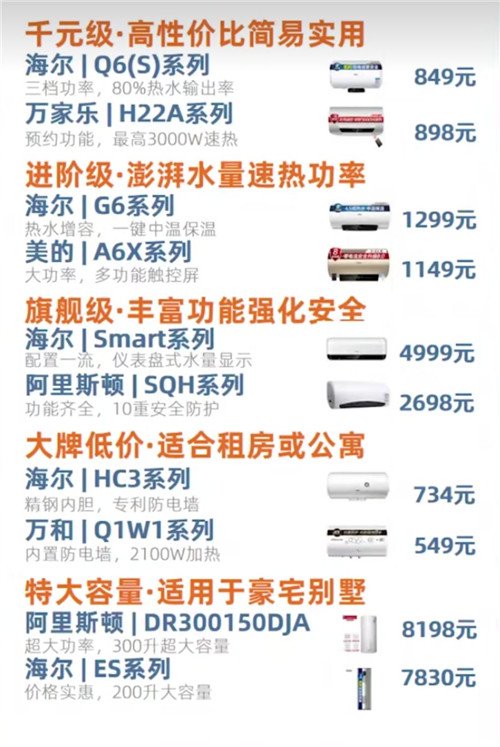 海爾擁有亞洲最大的熱水器生產(chǎn)基地,而且參與了電熱水器多項(xiàng)國(guó)家標(biāo)準(zhǔn)的制定工作,產(chǎn)品齊全,選擇豐富,產(chǎn)品性能、安全性都是行業(yè)的頂尖水準(zhǔn)。目前有卡薩帝、海爾和統(tǒng)帥三個(gè)品牌分別面向高端、中端和入門(mén)市場(chǎng)。