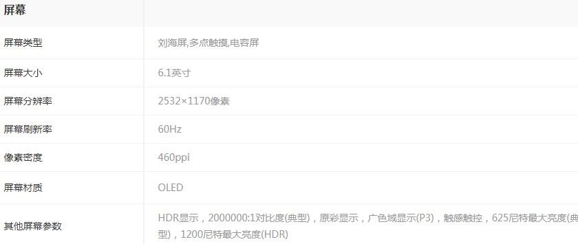 6.1英寸2532X1170+60Hz+460PPI +超視網(wǎng)膜XDR+P3廣色域+625nit OLED屏,重量在162g,顏色:黑、白、紅、綠、藍(lán)色。