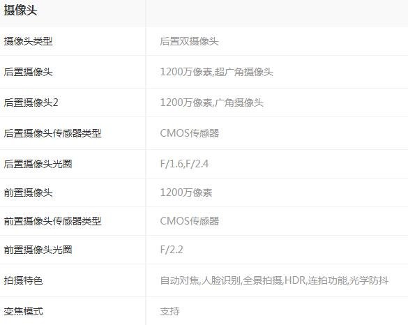 前置F2.2的1200W像素攝像頭,后置雙攝,分為廣角、超廣角鏡頭(廣角為F1.6 +7P鏡頭OIS+雙核對焦的1200W像素攝像頭,而超廣角則是等效焦距13mm+120度+F2.4的1200W像素鏡頭),廣角2倍光學(xué)變焦,5倍數(shù)碼變焦,支持杜比視界HDR視頻拍攝。