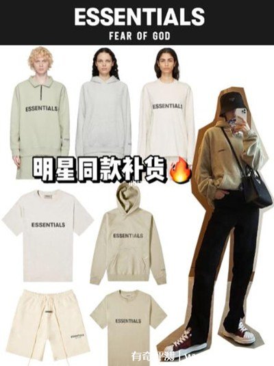 essentials嚴格來說它是fg(fear of god)的福線品牌,這個品牌的牛仔夾克、籃球短褲、連帽衫等服飾單品都有fg寬松裁剪風(fēng)格的影子,也有很多基本款的設(shè)計,因好穿搭好搭配而深受廣大消費者的喜愛。但網(wǎng)上也有很多人說,它之所以火爆是因為fear of god太貴,買不起,就只能買這個。