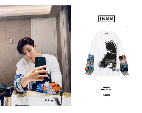 而且值得一說的是,inxx也是被明星紅人瘋狂寵幸的牌子,不只被JonyJ、VAVA穿過,而且還承包了TFboys的衣柜,像易烊千璽就穿過他們家的不少衣服。
