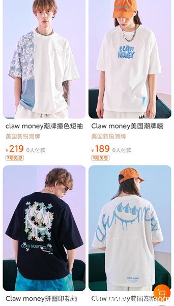 claw money服裝色彩豐富,多用卡通、印花、拼接元素,深受二十歲左右年輕人喜愛。