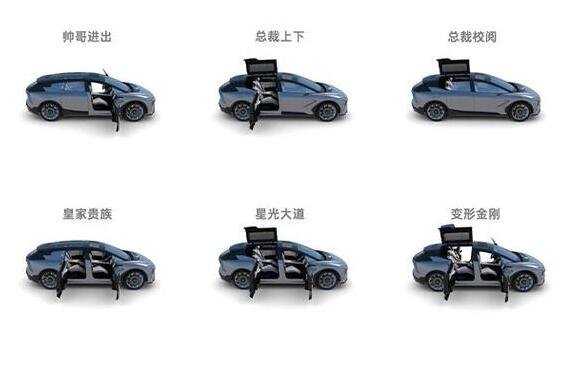 高合對于首款車型的期盼很高,也可以看出花了很多心思,比如說新穎的開門方式,高合稱之為NT(No Touch)展翼門。前后門采用對開門設計,后排的車窗連同C柱可以向上折疊,這些開門方式還有6種不同的排列組合。