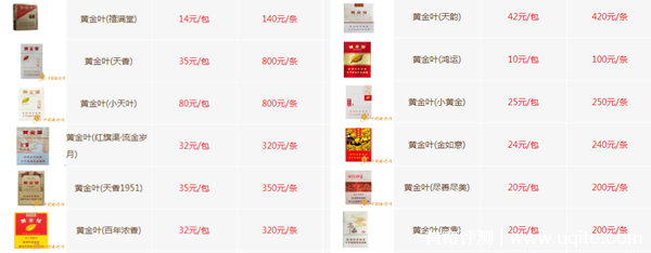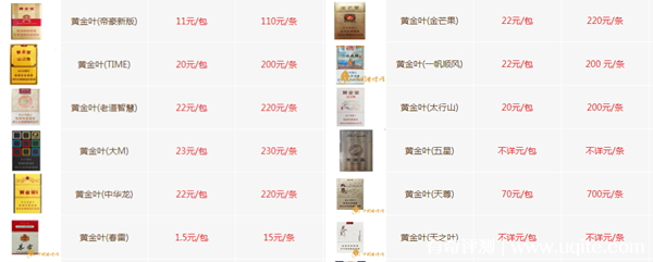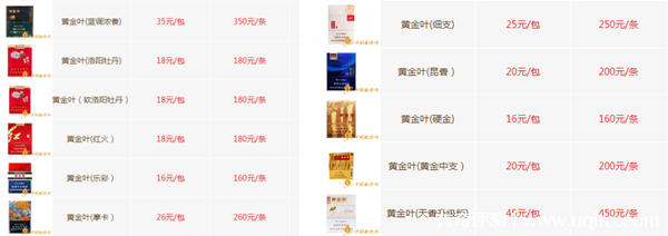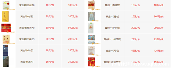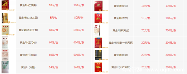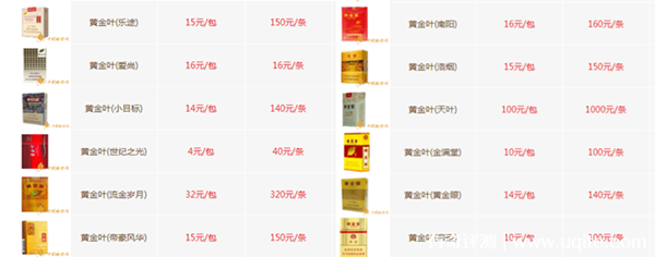 根據(jù)上表格來看,黃金葉香煙每包定價(jià)在4-100元區(qū)間,其中10、15、18、20、25元的香煙種類居多,而每條黃金葉香煙的價(jià)格在40-1000元區(qū)間,是香煙品牌中性價(jià)比頗高的牌子。