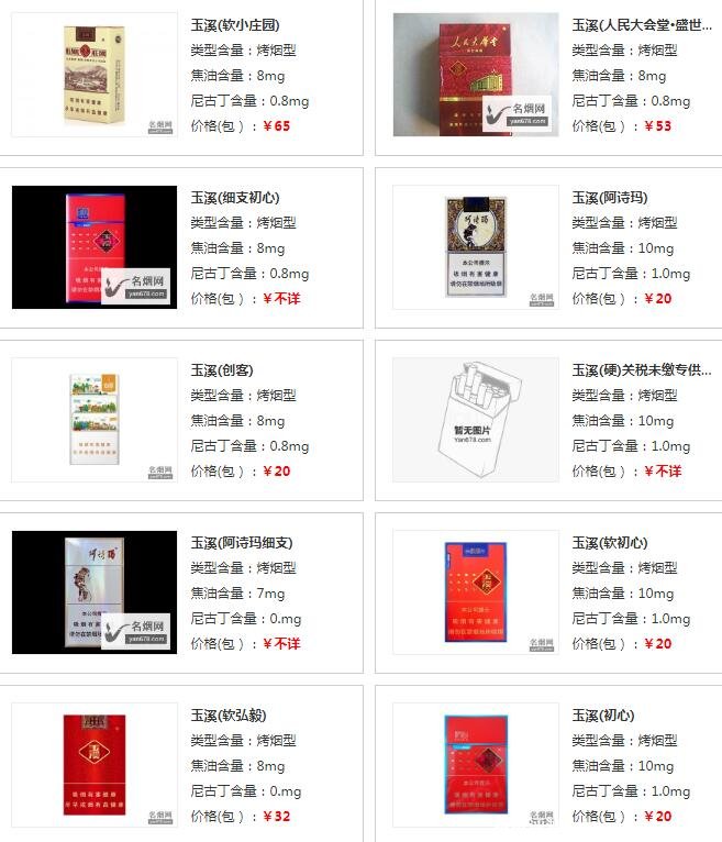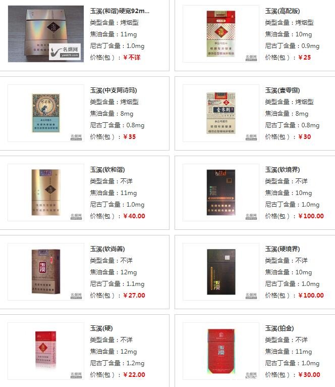 玉溪香煙價(jià)格表圖大全
